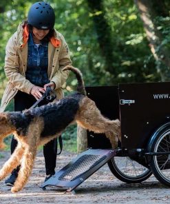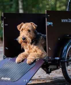 Il Babboe Dog è dotato di una porta con serratura nella parte anteriore del box, che funge anche da rampa per il tuo cane. Ora il tuo cane può entrare e uscire dalla bici da carico da solo, non avrai più bisogno di sollevarlo dentro e fuori dalla scatola.