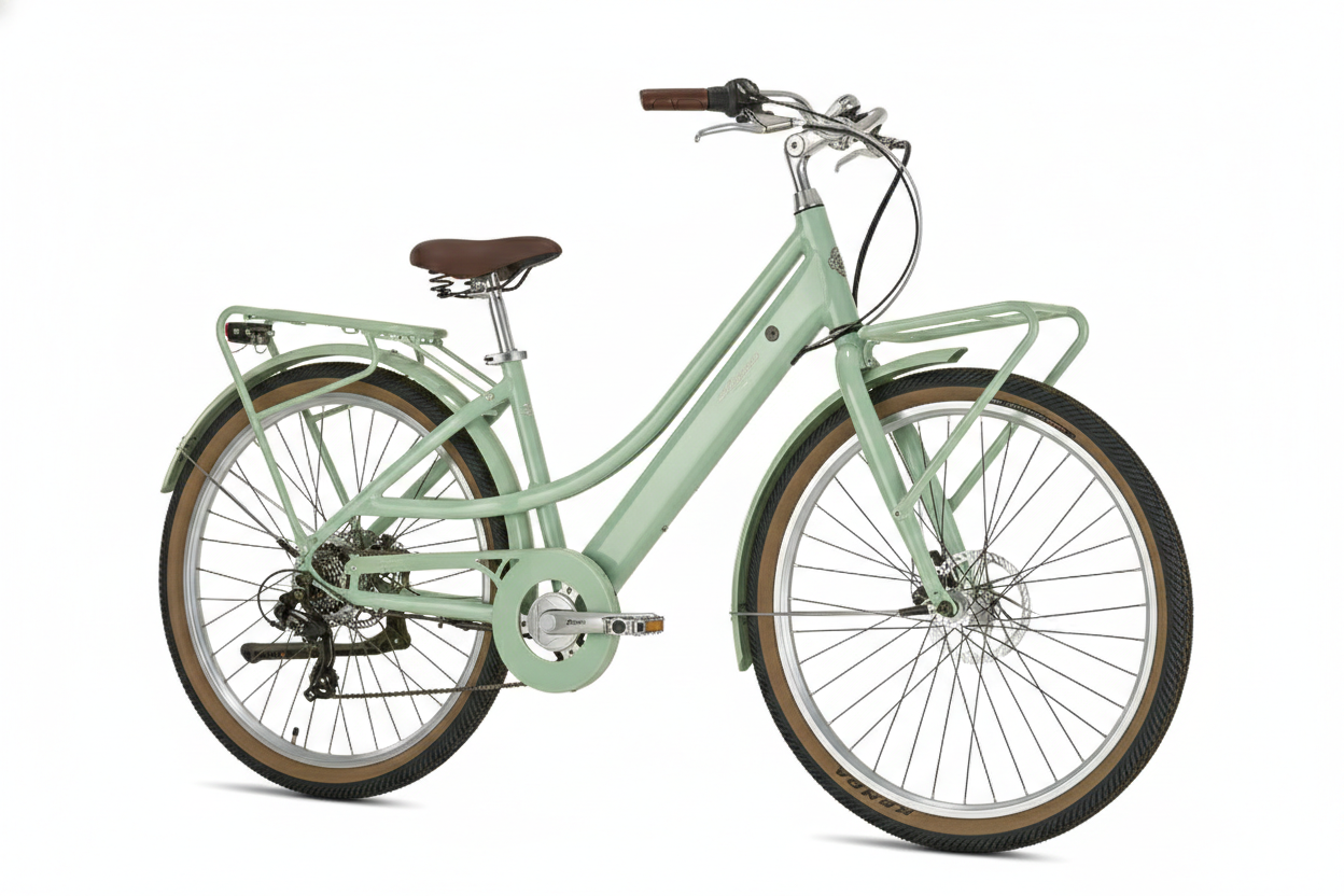 La bicicletta elettrica fabbricata in Italia. Alpina Bike da oltre 30 produce ed assembla biciclette in Italia, e precisamente a Cesena. Il gusto tipicamente vintage contraddistingue questo marchio. Qualità e Robustezza. La precisione e la cura degli artigiani italiani fanno si che questo prodotto sia curato nei dettagli e nelle finiture. Componenti di prima qualità e attenzione ai dettagli rendono Alpina un prodotto esclusivo. Caratteristiche Tecniche Telaio in alluminio per garantire leggerezza e resistenza, motore al mozzo da 45 Nm per una spinta regolare e dolce, batteria da 15Ah per garantire una autonomia fino a 90 km, 5 velocità di assistenza elettrica e un cambio Shimano per aiutarti nelle salite più impervie. La biciletta ideale per l’utilizzo di tutti i giorni, la taglia M è indicata per altezze comprese fra 155 e 185 cm.