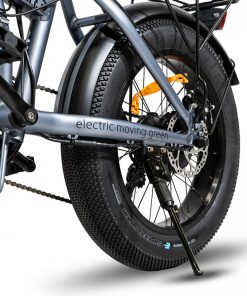 Il classico telaio pieghevole in alluminio 6061 e dalla grafica rinnovata, caratterizza lo stile della Fat-Bike di EMG agevolando anche il trasporto. Il cambio e deragliatore Shimano precisi e di qualità, supportano la pedalata passando agevolmente da diversi gradi di resistenza senza difficoltà.
