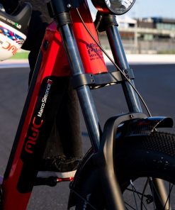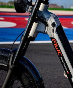I freni a disco idraulici da 180/160 mm della bicicletta elettrica di EMG garantiscono un controllo preciso della velocità in qualsiasi situazione, mentre il display color LCD fornisce informazioni cruciali sullo stato della bicicletta e della batteria. E, per una guida sicura anche di note, è equipaggiata di un potente faro LED hi-light anteriore e una luce posteriore LED, mentre i parafanghi in carbon look proteggono dai detriti e dallo sporco.
