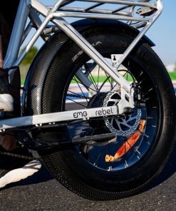 Con un portapacchi integrato e pedali in alluminio, la fat bike elettrica Rebel di EMG offre praticità e comfort senza compromessi. Grazie alla batteria da 48V 13.2Ah 633Wh e al motore da 48V-250W 40Nm, puoi goderti fino a 70 km di autonomia* con una sola carica, facendo di questa e-bike la scelta ideale per avventure su lunghe distanze.