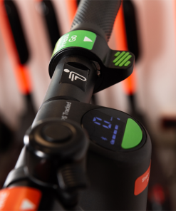 Il monopattino ES4 Professional è equipaggiato con un doppio sistema frenante: freno elettrico con sistema antibloccaggio sulla ruota anteriore e freno meccanico sulla ruota posteriore