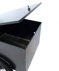 La cargo bike OX – LOCK BOX è progettata per tenere al sicuro il tuo carico se devi lasciarlo incustodito. La robusta scatola in alluminio e il coperchio chiudibile a chiave manterranno tutti i tuoi effetti personali al sicuro per tutto il giorno.