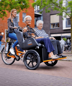 Oltre al fatto che questa bicicletta da risciò offre una soluzione per gli anziani, la Chat è adatta anche a chi vuole fare una visita guidata, ma anche a istituti di cura, famiglie e villaggi turistici.”