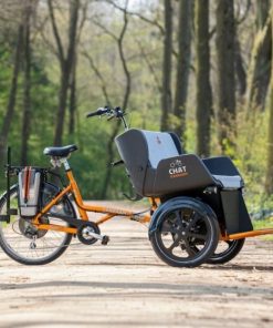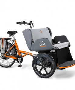 “La Chat in risciò è pensata per guidare insieme a bambini e/o adulti che non sono più in grado di farlo da soli. Un accompagnatore pedala con una o due persone. Le due persone che si uniscono al gruppo come copilota sono sedute una accanto all’altra in un abitacolo appositamente progettato dove design ed ergonomia si fondono. Il conducente si siede dietro questa cabina di pilotaggio e ha così una panoramica della strada, ma anche degli occupanti.