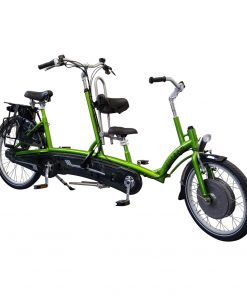 Il Kivo ha anche una variante con due ruote dietro. Su tutte le varianti è possibile installare un motore elettrico opzionale, che offre un comodo appoggio della pedalata, questo rende ancora più facile pedalare su questo tandem.”