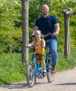 “Il Kivo è un tandem bambino-genitore con un adulto seduto dietro e un bambino seduto davanti. Il bambino può avere una buona visuale dell’ambiente. Il cavaliere seduto dietro può sempre tenere d’occhio il bambino. Il Kivo ha un passaggio basso e quindi è più facile da usare.